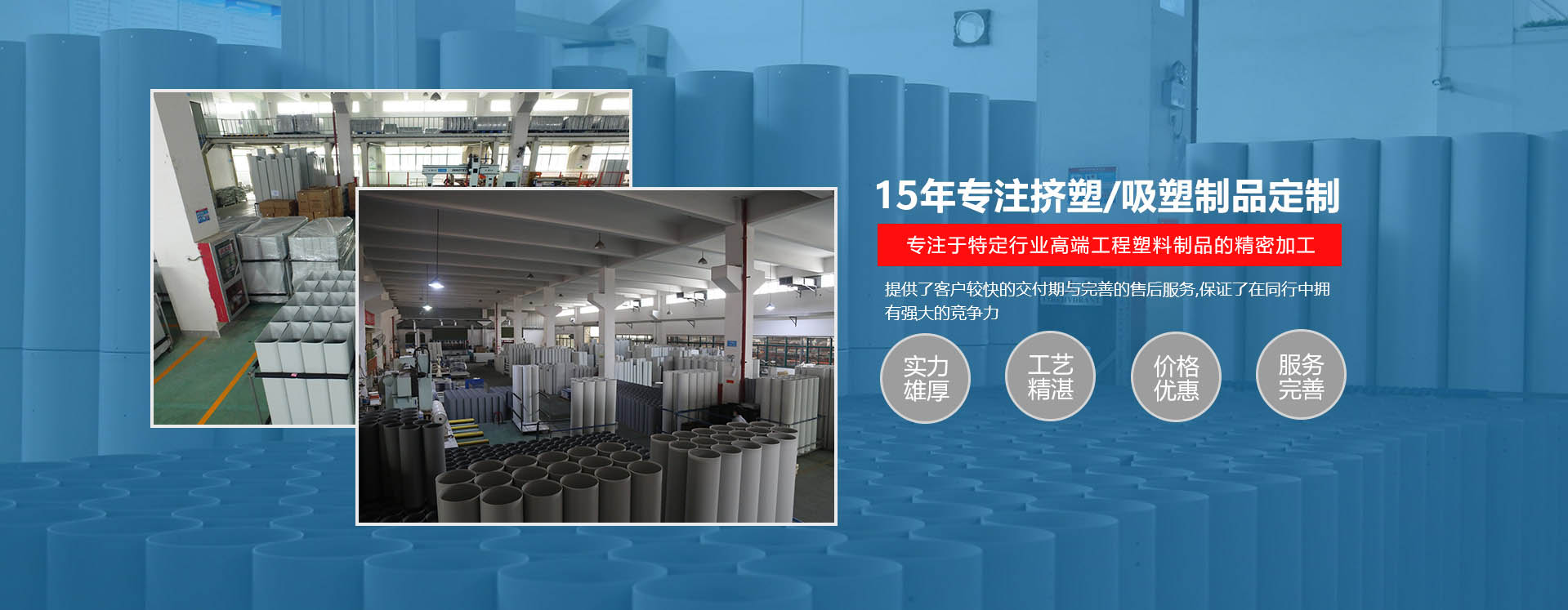 獨立的模具房,注塑生產車間,擠出生產車間,倉庫,品質檢驗室。擁有多臺擠出機,注塑機,雕刻機和加工中心。